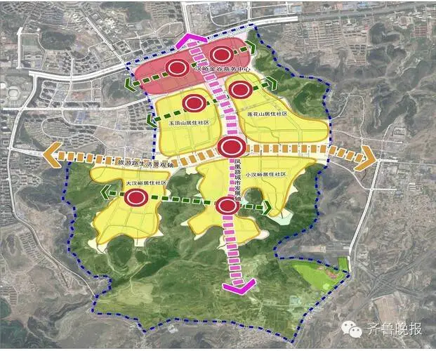在规划上,片区突出城市门户地位和山水相依的自然风貌特征,塑造沿经十路和世纪大道的城市景观,形成和谐、魅力、宜居的城市新区。功能定位以居住、文教、综合服务为主,兼有体育、科研生态旅游功能的新型文化生活社区。