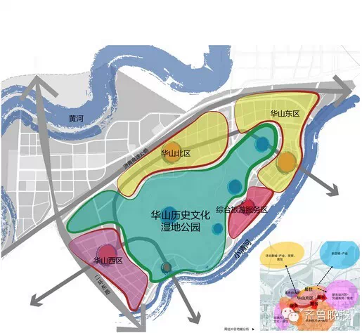 华山片区西至二环东路,北至济青高速公路,东南至小清河,总用地面积1460 . 36公顷,规划城镇总居住人口约15万人。规划将突出华山历史文化与景观特色,重点塑造华山历史文化湿地公园,将片区塑造成为“文化底蕴浓厚、自然景观近人、旅游配套完善、生活舒适便利”的城市综合区。